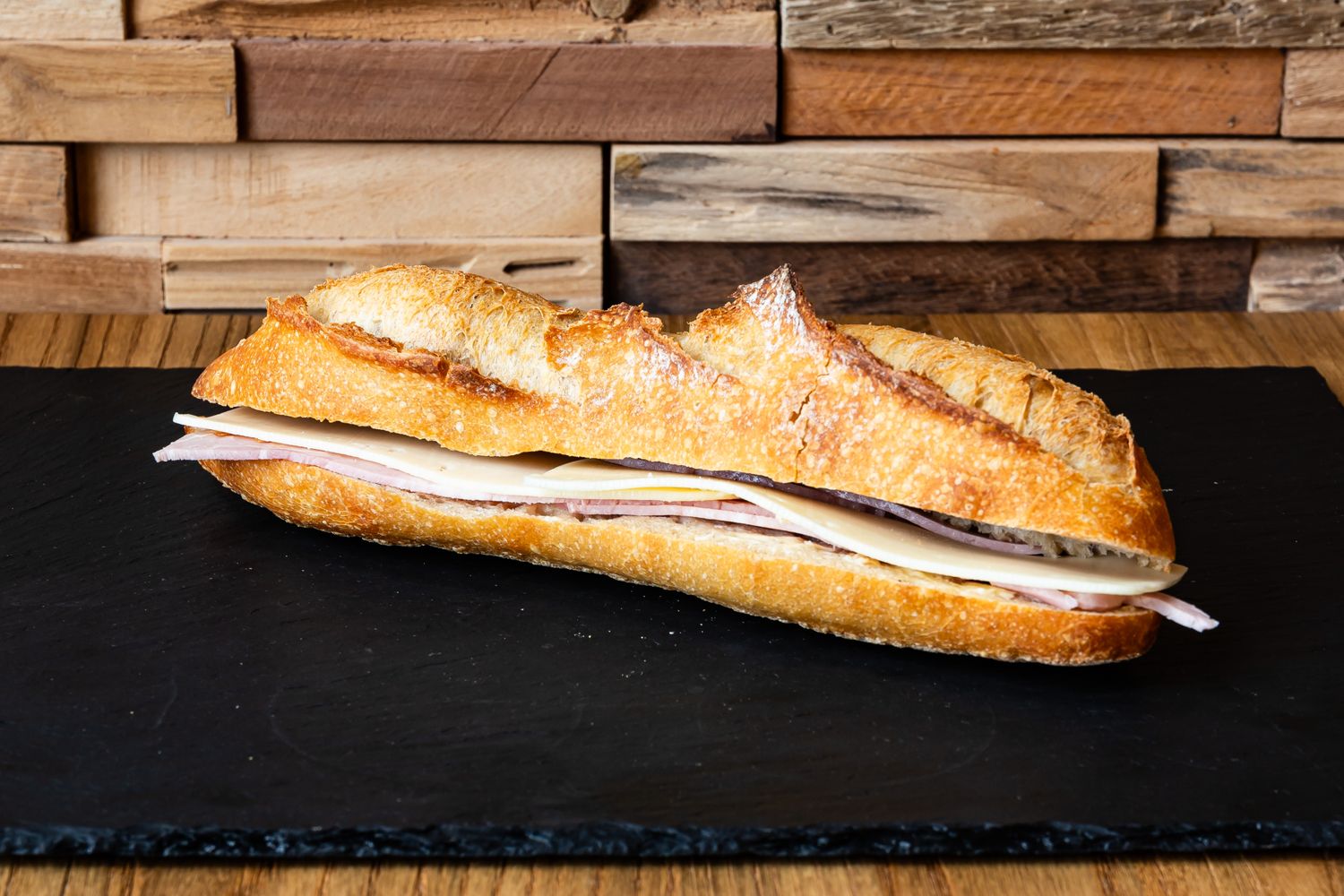 Notre sandwich est préparé dans notre cuisine et notre baguette dans notre fournil.