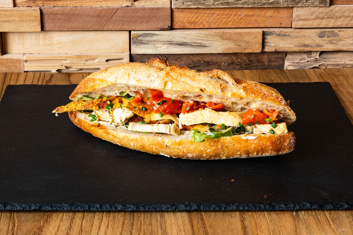 • Notre sandwich est préparé dans notre cuisine et notre baguette dans notre fournil.